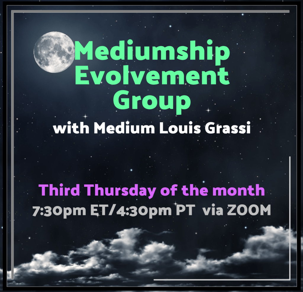 Join spiritual practitioner Louis Grassi for his brand-new monthly evolvement group! The class will take place virtually, via ZOOM, on the third Thursday of the month. Louis will teach you to build and draw on that innate psychic sense you know you have. In addition, he will show you that these psychic senses can serve as the real gateway to communicating with the spirit world. And even if you’re not sure about your abilities, but you’re very interested, this is a wonderful opportunity for you to grow those mediumship “muscles.”